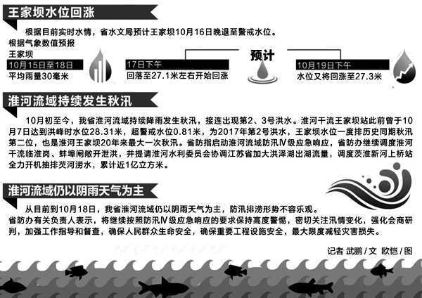 據安徽商報消息,10月15日從省防辦獲悉,受連續降雨影響,淮河發生2017年第3號洪水,王家壩站水位10月11日夜間止落回漲,14日14時42分出現洪峰水位27.92米,超警戒0.42米。 15日8時實時水位27.80米,仍超警戒0.3米。