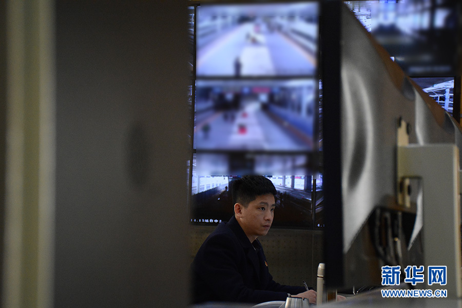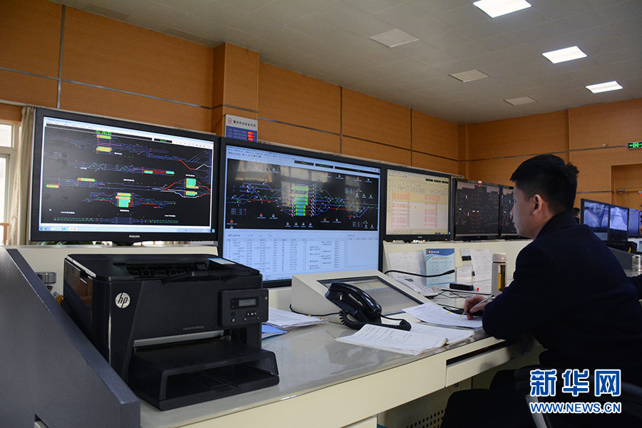 重慶北站運(yùn)轉(zhuǎn)室內(nèi),車站值班員正認(rèn)真監(jiān)控列車運(yùn)行情況。新華網(wǎng)趙紫東 攝 -