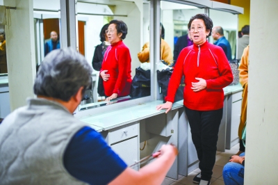 有人在舞臺(tái)上開(kāi)心地接受觀眾如潮般的掌聲,也有人滿懷遺憾地離開(kāi)。著名梅派表演藝術(shù)家李玉芙,特別看重這次演出。但80歲的她因?yàn)榻虒W(xué)工作太累,這幾天失聲了。為了參加演出她昨天就去醫(yī)院打了激素針,因?yàn)闆](méi)有見(jiàn)效,演出前兩小時(shí)又打了一次針。直到演出開(kāi)始了,她還在后臺(tái)跟琴師合練,做最后的努力。最終還是因?yàn)樯ぷ訉?shí)在沒(méi)法兒堅(jiān)持,只能在眾人的勸說(shuō)下,滿懷歉意離開(kāi)了劇場(chǎng)。