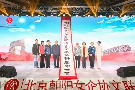在揭牌儀式上,朝陽區文聯相關領導為朝陽區女企協首屆文聯主席蔡國慶、常務副主席吳麗敏,副主席王素和、趙易之、周秀玲、仉昊、劉紅宇、張璞潔、許玲等同志頒發聘書,并為朝陽區女企協文聯揭牌。