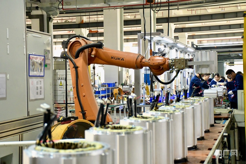 在寧德時代電機的智能制造車間,機械臂靈活揮舞,新能源電機的核心部件在生產線上快速組裝。