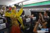 •   蘭州客運段列車員在蘭州鐵路局開行的首趟寶蘭高鐵G2028次動車組上為旅客表演節目(7月9日攝)。7月9日,寶雞至蘭州高鐵正式開通運營,西北的甘肅、青海、新疆由此融入全國高鐵大家庭。今年開跑的“復興號”在京滬高鐵實現350公里時速運營,再次創造了領先世界的中國速度。目前,中國鐵路在勘察設計、工程建造、高速動車組、列車控制、牽引供電、運營管理、安全保障等領域已經取得一系列自主創新成果,中國鐵路總體技術水平已邁入世界先進行列,部分技術處于世界領先水平。作為中國“新四大發明”之一,高鐵不僅安全、便利、快捷地服務著中國旅客,同時也驚艷著世界。新華社記者 陳斌 攝