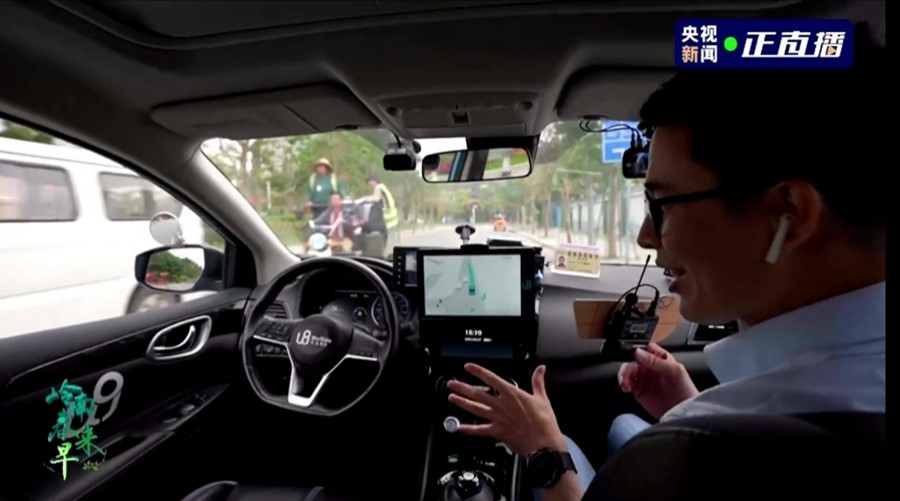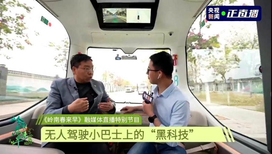 直播中,總臺記者走進同時落地無人駕駛汽車和無人駕駛巴士的廣州生物島,使用手機軟件叫車,一路分享新鮮體驗感受,并與自動駕駛領軍企業(yè)文遠知行首席運營官張力暢談無人駕駛技術里的“黑科技”。