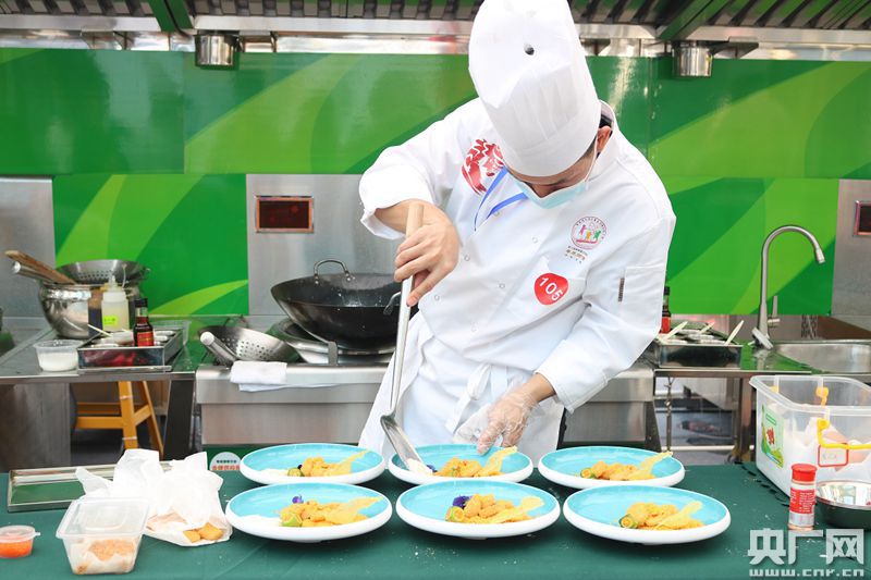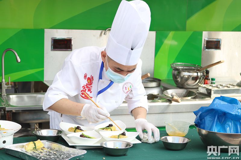中烹競賽區(qū)大廚正在進行菜品的最后完善。(央廣網(wǎng)記者 夏燕 攝)