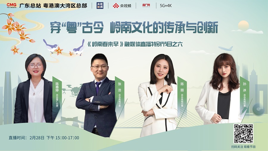 2月26日至2月28日,中央廣播電視總臺廣東總站暨粵港澳大灣區(qū)總部推出六期融媒體直播特別節(jié)目《嶺南春來早》,通過央視新聞、央廣網、央視頻等總臺新媒體平臺,展現(xiàn)廣東在開局之年主動作為的奮戰(zhàn)場面。