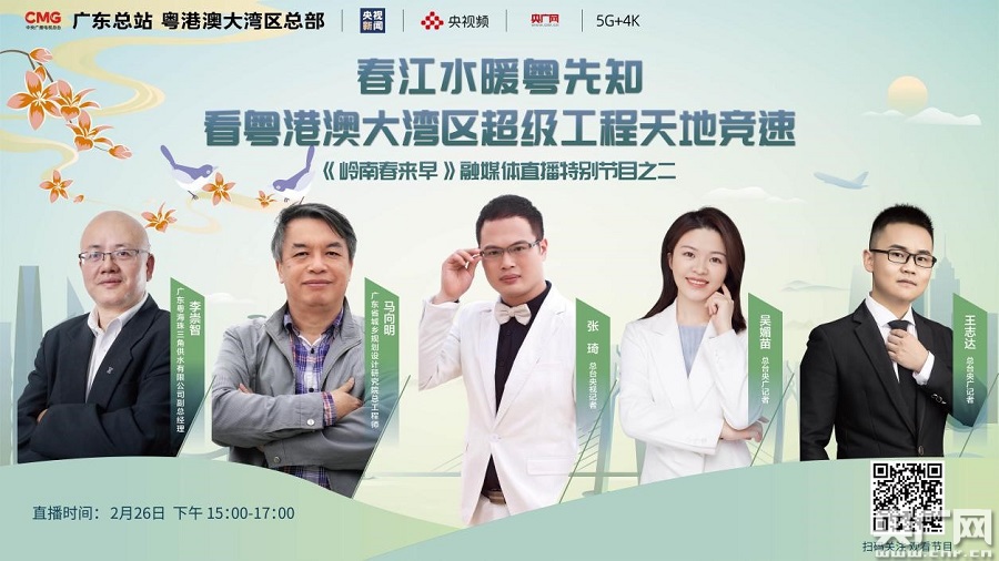 2月26日至2月28日,中央廣播電視總臺廣東總站暨粵港澳大灣區總部推出六期融媒體直播特別節目《嶺南春來早》,通過央視新聞、央廣網、央視頻等總臺新媒體平臺,展現廣東在開局之年主動作為的奮戰場面。