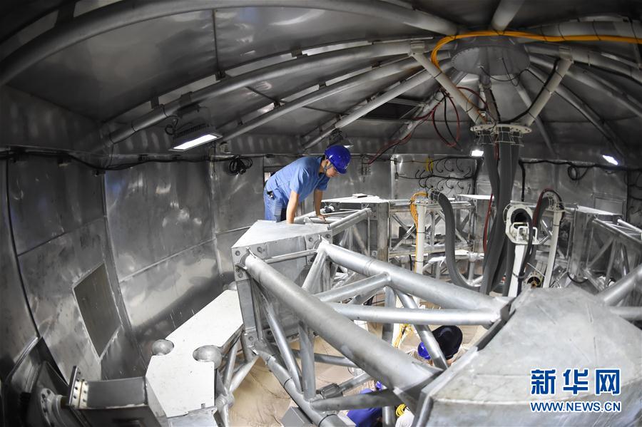 •      8月10日,石向瑋在FAST饋源艙內作業。新華社記者歐東衢 攝