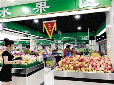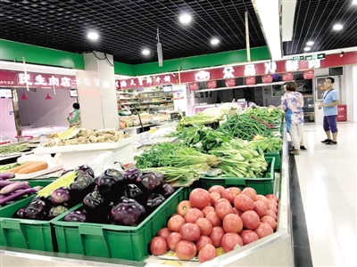 在鄭東新區的體育公園便民服務中心里,劉先生正在選購活蝦!斑@個農貿市場,基本和超市沒什么區別,蔬菜種類全還干凈整潔!眲⑾壬f。