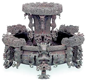 被稱為“古代冰箱”的銅鑒缶,外表極富裝飾美,集渾鑄、分鑄、焊接制作工藝于一體,缶置于鑒內(nèi),蓋好蓋,二者渾然一體。省博物館館長(zhǎng)方勤介紹,為使二者結(jié)合穩(wěn)固,鑒底部伸出品字形三個(gè)彎鉤,尊的圈足前后留有三個(gè)穿眼,剛好容彎鉤插進(jìn),并可自動(dòng)倒鉤扣住。無(wú)論從藝術(shù)角度還是從實(shí)用角度講,都已有現(xiàn)代工業(yè)設(shè)計(jì)的味道。