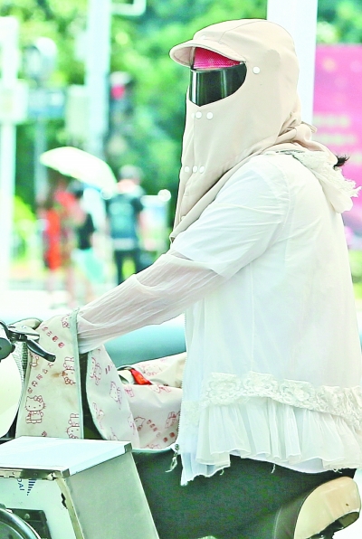 昨日,“全副武裝”騎電動(dòng)車的女士