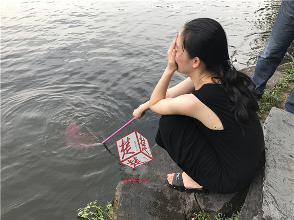 葉女士系武漢人,在武漢上班,周末來到杭州游玩。7月8日下午6點左右,她在蘇堤西湖邊拍照時,手機不慎掉入西湖,要知道里面可保存著大量聯系人和珍貴照片,這讓她欲哭無淚。葉女士借來捕魚的網兜,不過湖水實在太深,網兜無法觸及到湖底。