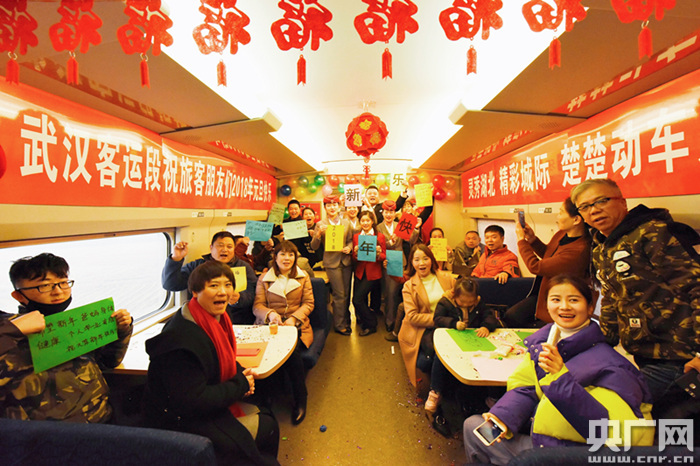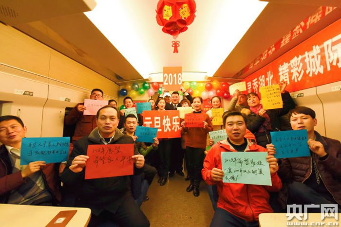 武漢客運段城際動車組車間黨總支書記章瓊表示,武漢客運段一直致力于打造精品文化列車,2018年元旦來臨之際舉辦這個活動是為了讓旅客展望新年,感受祝福,讓旅途更加溫馨溫暖,如同高速發(fā)展的中國鐵路一般,駛向美好的未來。