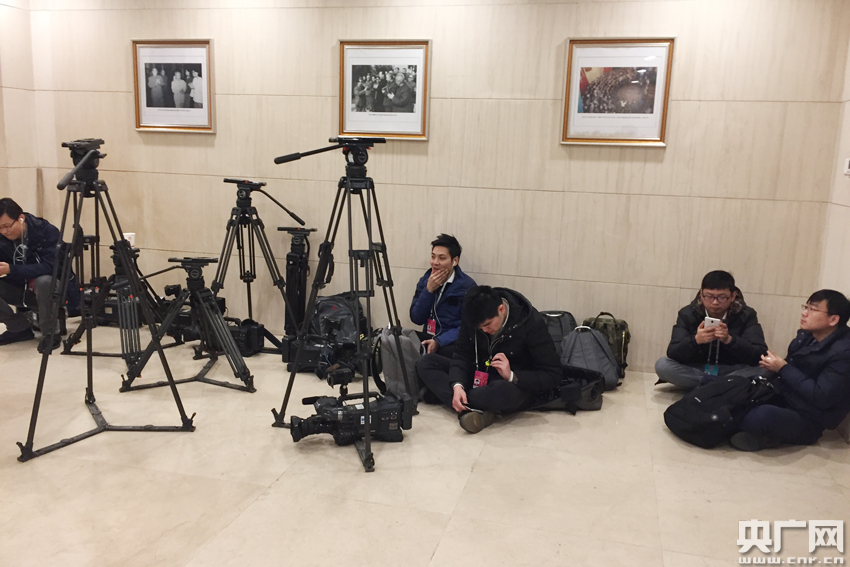 •   央廣網(wǎng)武漢1月23日消息(記者熊峰 黃炎秋)1月23日上午,政協(xié)湖北省第十二屆一次會議在武漢召開,湖北進入“兩會時間”。圖為會場外,各路媒體記者嚴陣以待,在為采訪政協(xié)委員做準備。(記者熊峰 攝)