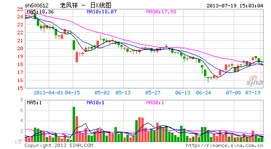 受此次調查影響,上周五收盤時,黃金概念股中涉及珠寶首飾的公司股價全面下跌,雖然7月16日老鳳祥發布了業績預增的中報快報,但公司股價繼續下跌,當日以17.86元/股收盤,最高跌幅近2%。