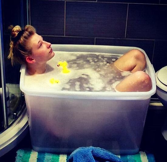據(jù)英國《每日郵報》近日報道,英國伯明翰大學(xué)學(xué)生露西萊思(Lucy Lyth)自創(chuàng)新式泡澡,露西把一個容積為145升的塑料箱當(dāng)作浴缸,體格嬌小的她表示那樣泡澡十分舒服。
