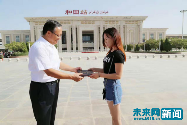 原來(lái),在得知學(xué)生無(wú)法回學(xué)校參加畢業(yè)典禮后,校黨委書(shū)記李玉鴻感到很遺憾,決定在去和田探親時(shí),親自為她頒發(fā)畢業(yè)證書(shū)。李玉鴻8日早上八點(diǎn)半從昌吉出發(fā),今天十一點(diǎn)到和田站,T9526次列車(chē)經(jīng)過(guò)23個(gè)多小時(shí)行駛2000公里,終于到達(dá)和田。下車(chē)后,李玉鴻看見(jiàn)學(xué)生已經(jīng)在車(chē)站門(mén)口等著了。“雖然這件事對(duì)學(xué)校來(lái)講不算大事,但對(duì)學(xué)生來(lái)說(shuō),她很開(kāi)心。”王芳老師說(shuō)。