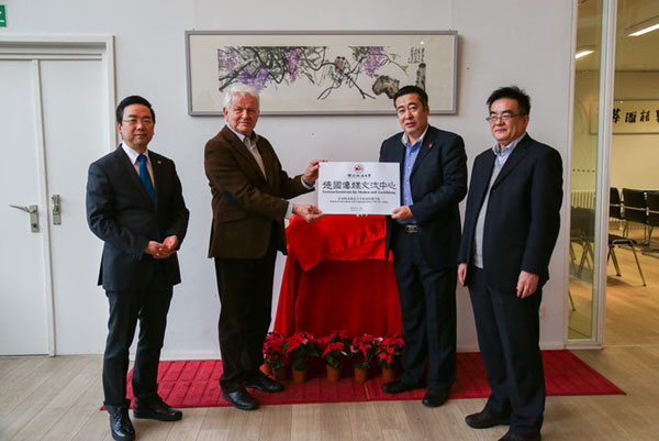前德國國會議員、德國尤利希德意志科研中心主任、德中藝術設計交流協會高級顧問阿道夫?里茲,杜塞爾多夫原大區主席約爾根?比索,德國資深媒體專家約阿希姆?烏姆巴赫,德國知名設計、攝影和藝術策展人考琳娜?蓋爾茨等當地政治、文化名人出席了掛牌儀式。