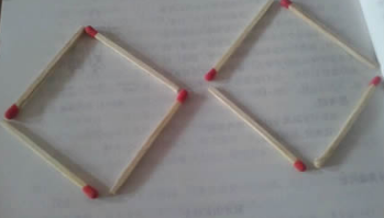 下面是由8根火柴棍組成的四邊形,要求讓其在只移動兩根的情況下,變成一個四方形,火柴棍不能折斷,也不能彎曲。