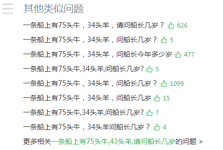 而從小學生的思維出發,則是將題干中的75與34這兩個數字進行加減乘除運算,75減去34等于41,是在1到100之間,所以,多數人會覺得船長的年齡可能是41歲。