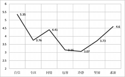 調(diào)查采用6分制等級問卷,結(jié)果以平均分、標(biāo)準(zhǔn)分表示各心理品質(zhì)的發(fā)展水平,以1-6分代表從低到高的發(fā)展趨勢,6分為滿分。