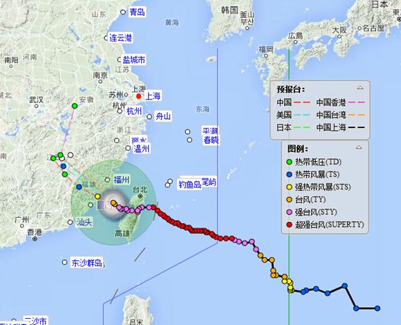 今早6點,"杜鵑"中心位于福建省莆田市東南方大約80公里的海峽海面上,強度為臺風級別。預計登陸后強度進一步減弱,夜間將進入江西省境內并減弱為低氣壓。