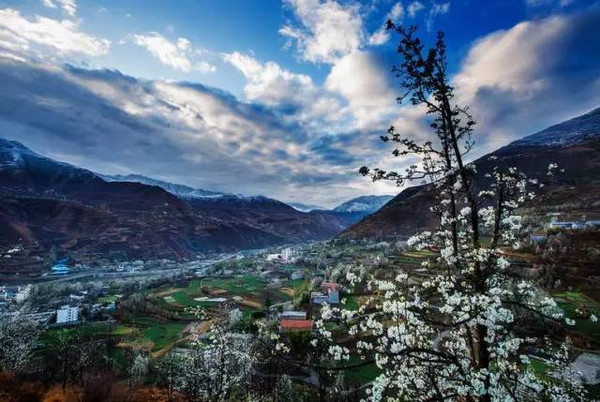 梨花處處有,我獨贊金川。金川的梨樹,樹身高大,最老的一株梨樹便生長了一百多年,樹身高大,至今生長良好,一簇簇花朵開得非常茂盛,花瓣如絲絨般柔和。