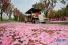 •   4月17日,一夜風雨過后,江蘇南通洲際綠博園櫻花大道上櫻花花瓣飄落一地。 新華社發(fā)(許叢軍 攝)