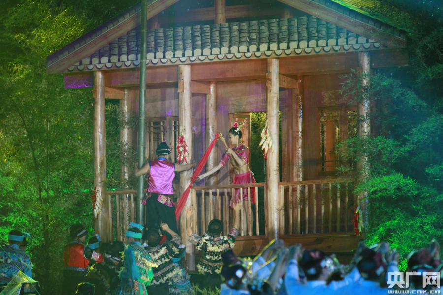 一首首情歌從窗口飛出,一個個靚妹俊哥從河的兩岸走來,阿哥阿妹盡情歌唱喲,演繹侗族大霧梁永不消逝的情歌.....。在皇都景區(qū)分會場,大型原生態(tài)情歌大對唱實景演出——“歌醉侗寨”正在精彩開演。該節(jié)目時長1個半小時,依托坪坦河兩岸侗寨風光,以侗族情歌對唱為主線,將四里山歌、苗歌、瑤歌、喉路歌、蘆笙、木葉、侗笛、琵琶歌有機融合,讓游客在觀賞美麗山水、古樸侗寨的同時,盡情聆聽到美妙的歌聲。 “今年的節(jié)目讓我耳目一新,大戊梁歌會一年比一年精彩。”廣東游客楊濤豎起大拇指稱贊。 “不僅精彩,活動內容豐富,有品味,景區(qū)文化內涵大大提升了。”北京游客黃玲插話過來。 -