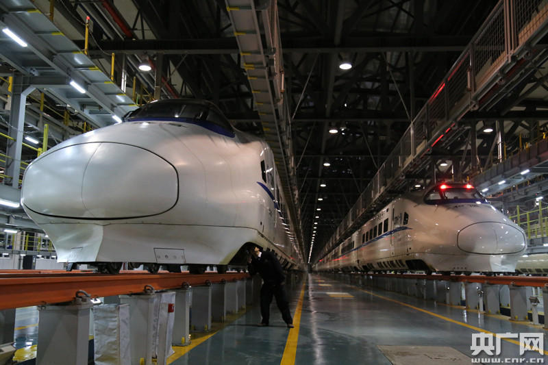 •      地勤機械師正在認真檢查剛入庫的動車組   央廣網(wǎng)南寧1月30日消息(記者許大為 通訊員覃付剛 石濟銘)為了確保春運期間動車運行安全,中國鐵路南寧局集團有限公司所屬的桂林動車所加強調度指揮工作,做好人力調配,強化夜間入庫動車的檢查保養(yǎng)工作。工作人員加強了對動車上的各項設備、設施進行全面整修,消除安全隱患,確保動車組以整潔、安全的狀態(tài)投入到春運工作中。