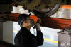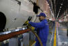 •      地勤機械師正在認真檢查剛入庫的動車組