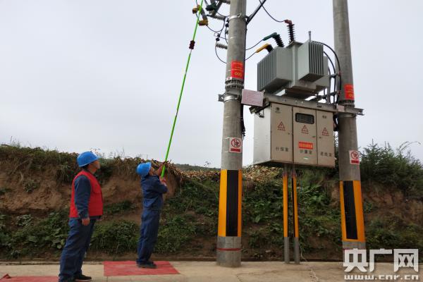 甘肅省深度貧困地區脫貧攻堅電網工程竣工投產儀式臨夏分會場,隨著古城新村臺區400千伏安變壓器啟動投運成功,標志著建設工程全面完工。(央廣網發 甘肅省電力公司供圖)