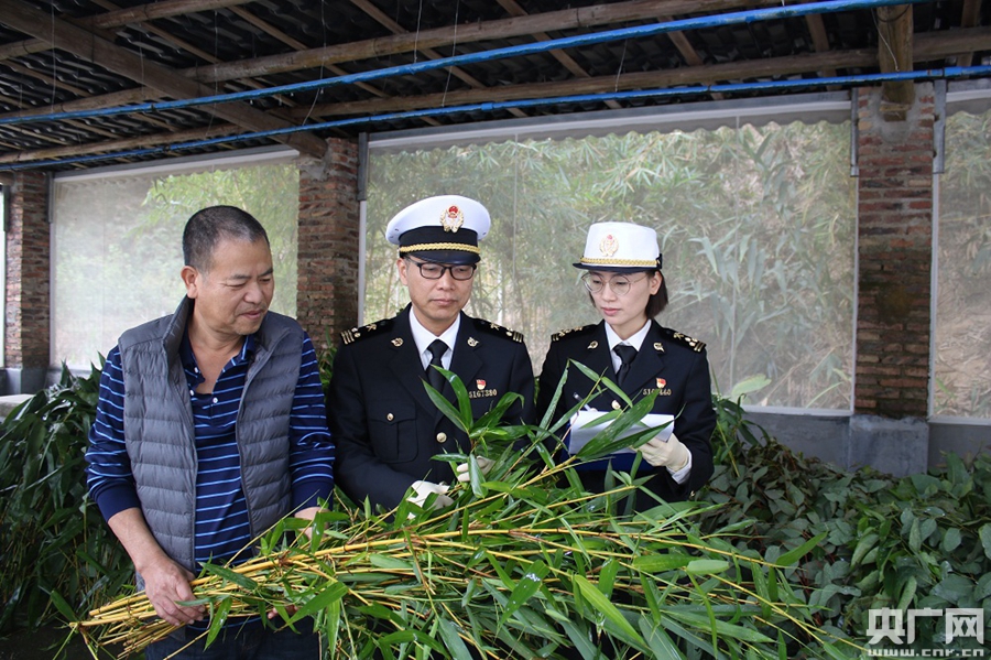 “我們日常監管主要查看竹葉有沒有病蟲害,例如竹葉表面有沒有纏有白絲的葉苞,如果有就表明葉苞里面可能包裹著竹螟幼蟲。這是一種能嚴重危害竹子的卷葉蟲,要及時做出處理。”撥開眼前密密麻麻的竹叢,廣州海關所屬從化海關屬地外勤科副科長徐蕾拿起竹子前段較嫩的竹葉,仔細翻開查看,“這些竹葉都十分健康、鮮嫩,是大熊貓最喜愛的食物。”