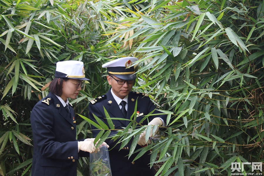 徐蕾和同事用剪刀抽取長度約50厘米連枝帶葉的竹枝,放入取樣袋,“我們需要抽取約1公斤樣品,送廣州海關技術中心進行農殘項目檢測。”