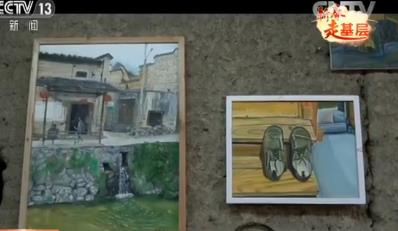 黃余清:這是第一張。草帽放在墻壁上面。我們剛去的時候筆都拿不穩。后來第二張畫了我們一個農產品,就是簸箕,后來就被客戶收藏。
