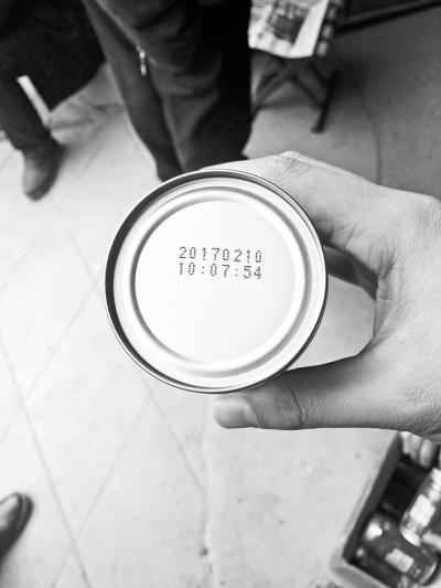 可是,這些福利拿到家里后,有細心的村民發現,飲料的生產日期不對勁兒。昨天,一位村民搬出來一箱飲料給記者看,包裝上顯示“板栗原漿板栗汁飲料”,可是包裝箱上的生產日期是2017年2月10日。打開包裝箱后,每罐飲料的罐身上印著“生產日期見罐底”,而罐底的日期也顯示“20170210”。