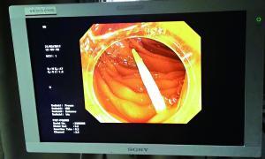 據中山一院胃腸外科譚進富副主任醫師介紹,胃鏡檢查發現,這根牙簽一路下滑,滯留在小腸,一端刺破腸道,鉆出去的部分占了三分之二長,引發了嚴重感染。