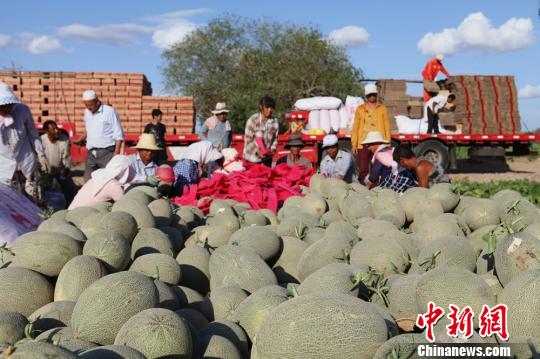中新網新疆哈密7月2日電 (史玉江 朱錦慧)隨著盛夏的到來,新疆哈密市中國哈密瓜原產地核心區種植基地的哈密瓜陸續成熟上市,吸引了海南、江西、廣東、上海、深圳等地客商前來搶購。