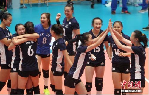 圖為江蘇奪冠瞬間,惠若琪等欣喜若狂。 中新社記者 張道正 攝