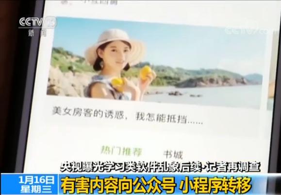 央視新聞頻道從2017年開始,多次曝光中小學生使用學習類App存在涉黃、不良信息泛濫等亂象,此次多部門密集出臺“組合拳”,也明確了學習類App應該遵守的底線和原則。但央視記者在后續調查中發現,學習類App中的涉黃內容、網絡游戲在高壓之下,被人悄悄轉移陣地到微信公眾號、小程序中,有的甚至蹭上媒體曝光的熱點,掛羊頭賣狗肉,繼續對未成年人傳播涉黃信息和網絡游戲。