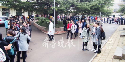 3月25日,山東省城某高校內,參加2017年研究生入學復試的考生排長隊等候體檢。(資料片) 齊魯晚報·齊魯壹點記者 周青先 攝