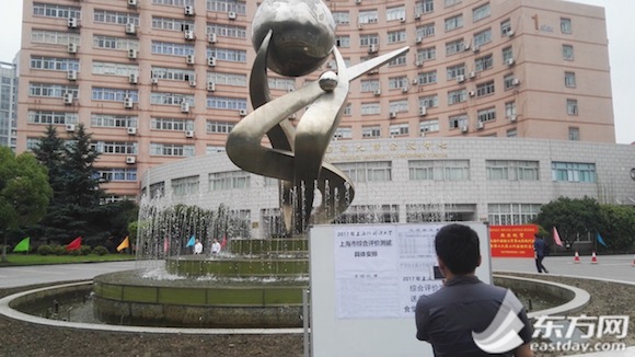 圖片說明:參加上海交通大學2017年綜合評價錄取改革試點校測面試的考生們,正在考場外列隊有序等待進入。魏楨琦攝