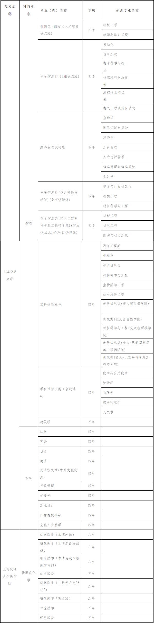 注:交大密西根學院、交大-巴黎高科卓越工程師學院、建筑學(五年制)、臨床醫學五年制(英語班)僅錄取有志愿的考生;