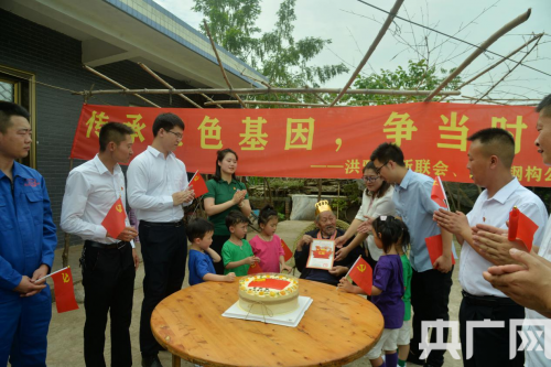 央廣網北京6月22日消息(記者 陳祥銳 通訊員 朱小根 林國強)黨旗迎風飄揚,黨徽金光閃耀。6月21日,在四川省眉山市洪雅縣余坪鎮黃里村1組,光榮在黨69年、百歲老人、志愿軍老戰士宋加銀家里,由洪雅縣余坪鎮黨委政府、洪雅縣新聯會愛心企業四川西拓鋼構公司、博苑幼兒園黨支部聯合開展的“傳承紅色基因,爭當時代新人”活動,老黨員、青年黨員、新階層代表和少年兒童歡聚一堂,追憶紅色歲月,同慶黨的生日,一起過政治生日。