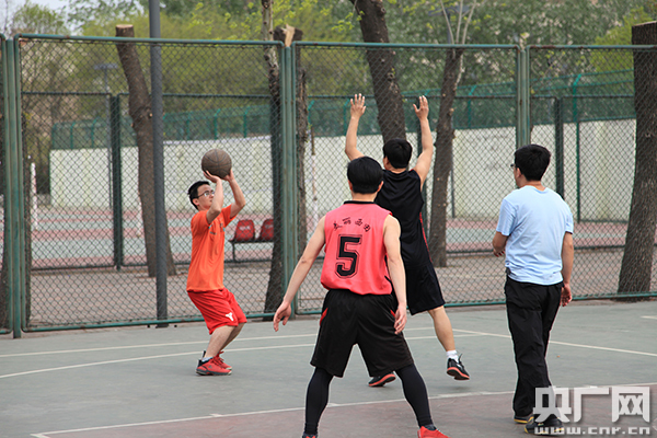 王濤說,初高中時的埋頭苦學,讓他烙下了頸椎病。自從打了籃球,頸椎病的毛病逐漸緩解了。王濤現在讀博士三年級,正在準備畢業論文,課業工作的壓力大。打籃球能夠讓他肌肉放松,釋放壓力。