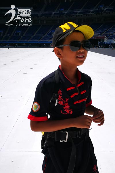 今年5月,全運會導演組到學校挑選“津娃”,聰明、可愛、自信、不怯場的潘天順吸引了導演的目光,他們認定這個陽光開朗的男孩可以撐得起“津娃”的形象。“真的嗎?真的是我一個人表演嗎?”潘天順有點不敢相信,他太高興了,一遍遍地跟老師確認。喜悅的心情無以言表,當時他完全沒有想到要經歷一段魔鬼般的訓練。