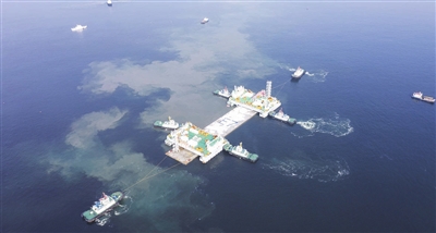 “浮運安裝工作于6時正式啟動,在先后完成拖輪編隊、浮運、系泊、安裝等工序后,于當日17時58分順利完成與E6管節的對接,用時近12個小時。”項目有關負責人介紹。