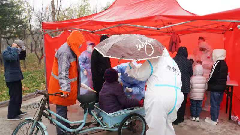 央廣網(wǎng)天津11月22日消息(記者劉陽)11月21日,天津市濱海新區(qū)啟動“濱城大篩”全員核酸檢測,對濱海新區(qū)全體居民進行大規(guī)模核酸檢測篩查。早上寒風(fēng)雨雪不期而遇,一抹抹“警察藍”團結(jié)一心、全力以赴:他們始終與戰(zhàn)斗在一線的醫(yī)務(wù)人員、社區(qū)工作者并肩作戰(zhàn);他們穿梭來往于各個核酸檢測點位,疏導(dǎo)交通、核驗身份、維持秩序;他們聞令而動,科學(xué)高效推進各項工作,全力護航“濱城大篩”安全順利進行……