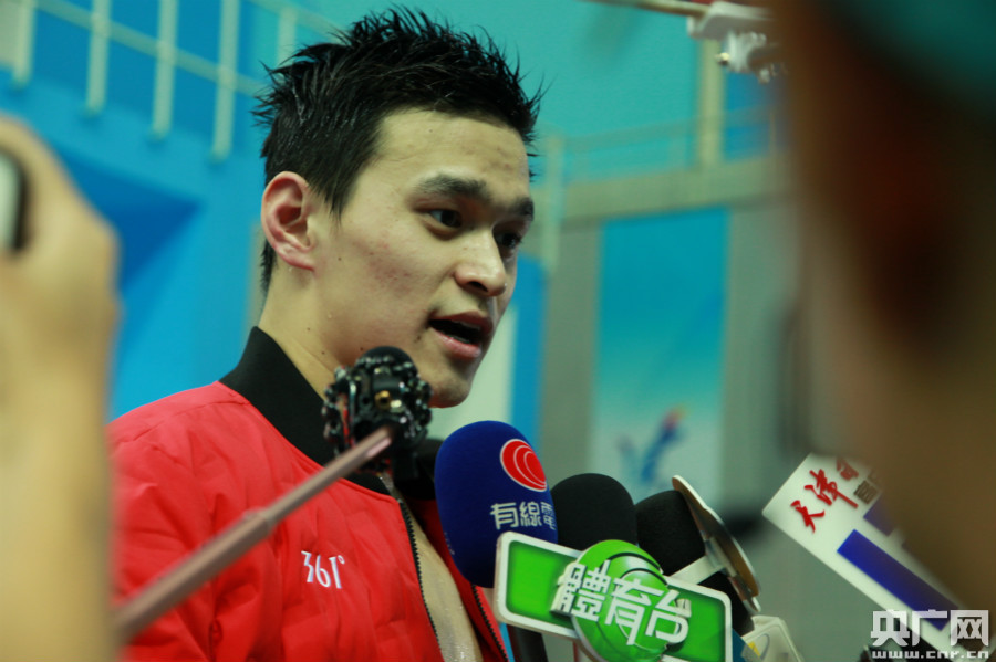 央廣網(wǎng)天津8月31日消息(記者劉陽 褚夫晴)31日晚,天津奧林匹克體育中心跳水游泳館內(nèi)歡聲雷動,連續(xù)四次征戰(zhàn)全運會的孫楊在男子400米自由泳決賽中順利實現(xiàn)全運三冠王,以3分41秒94的成績奪得金牌,山東隊的季新杰和上海的邱子傲以3分47秒52和3分49秒52的成績分獲二三名。