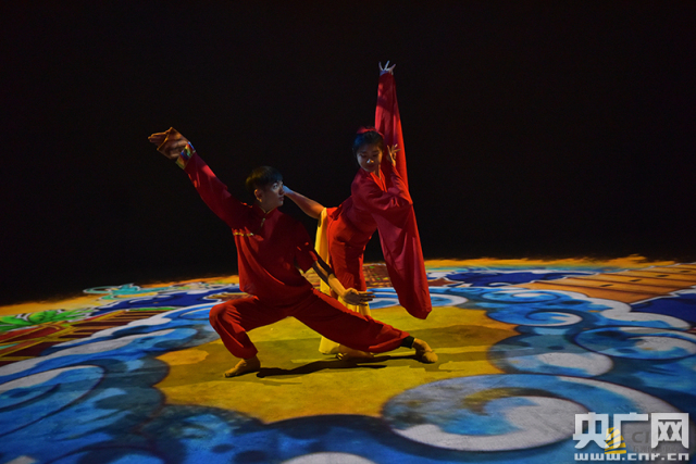 《樂享春節(jié)》以手繪年畫、中國民族舞蹈與三維投影技術(shù)相結(jié)合的表現(xiàn)形式,通過舞蹈演員與中國版圖互動(dòng),展現(xiàn)發(fā)生在中國廣袤大地上豐富多彩的文化民俗和喜慶祥和的春節(jié)圖景。