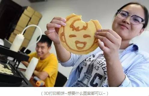 就在上個星期,青島的一家咖啡酒館還舉辦了一場3D打印體驗活動,活動的一個環節就是顧客自己設計、打印3D卡通煎餅。我看了一下,這款煎餅打印機工作原理和普通打印機差不多,只不過是將墨水換成雞蛋面粉,將紙張換成一個烤爐。按下開關,機器料瓶就像畫筆一樣,在烤盤上面畫煎餅了。